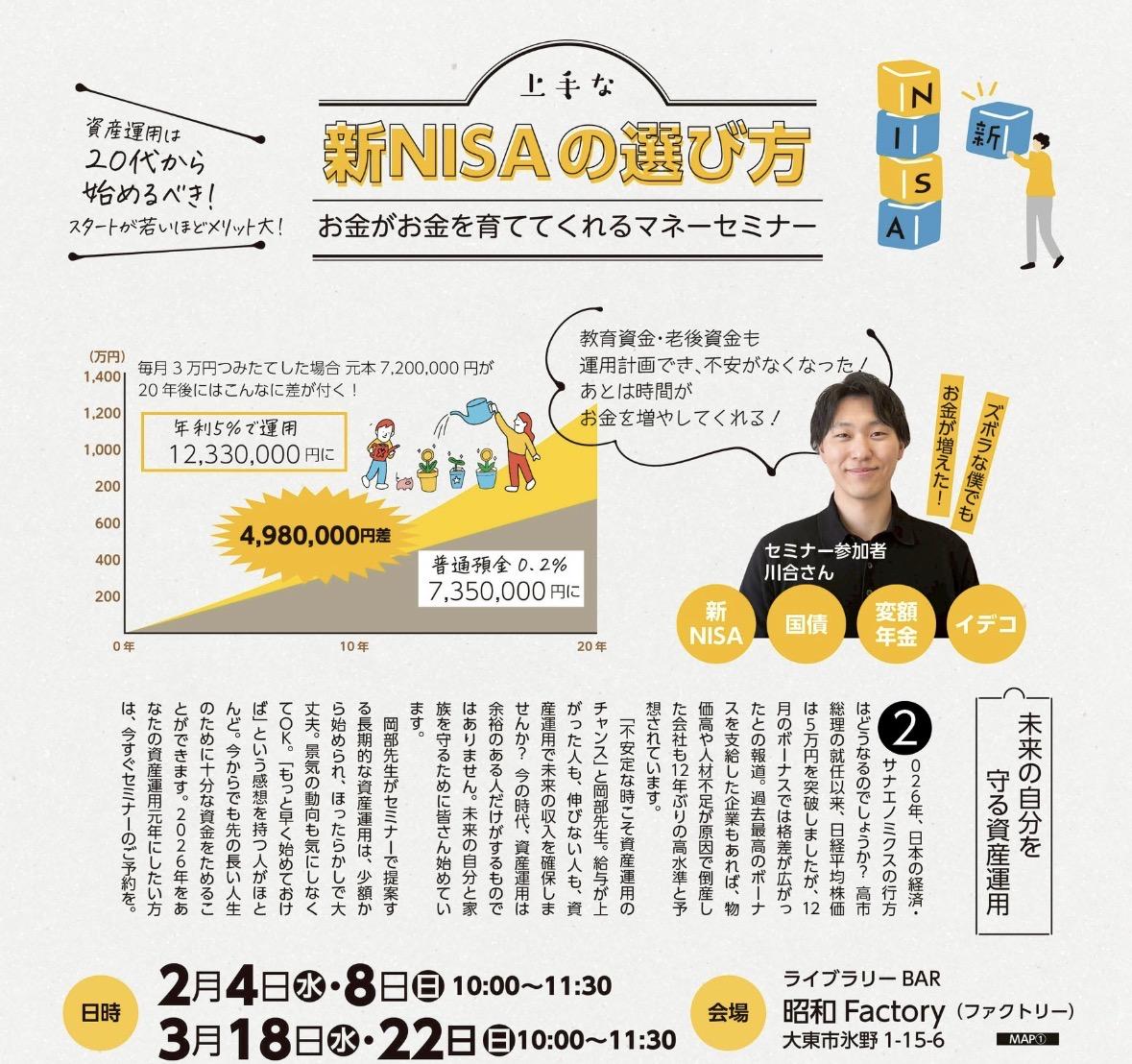 本講座では、新NISAの開設手順については取り扱いません。〒620-0045 京都府福知山市駅前町400 市民交流プラザふくちやま